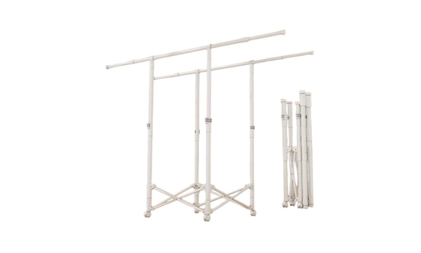 Πτυσσόμενη κρεμάστρα δαπέδου και απλώστρα ρούχων πολλαπλών χρήσεων, με μεταλλικό σκελετό και ροδάκια μετακίνησης.Με εργονομικό σχεδιασμό που αναδιπλώνεται για εξαιρετικά εύκολη αποθήκευση και μεταφορά χωρίς να καταλαμβάνει χώρο.Με δυνατότητα επέκτασης του οριζόντιου δοκαριού για εύκολη προσαρμογή στις ανάγκες σας.