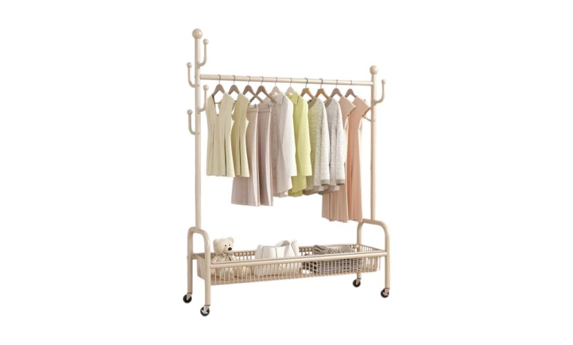 Τροχήλατη κρεμάστρα δαπέδου διπλή με ράφι παπουτσιών, ιδανική ως έπιπλο εισόδου ή για την οργάνωση των ρούχων στο δωμάτιό σας . Διαστάσεις: 172 x 120 x 36 cm.