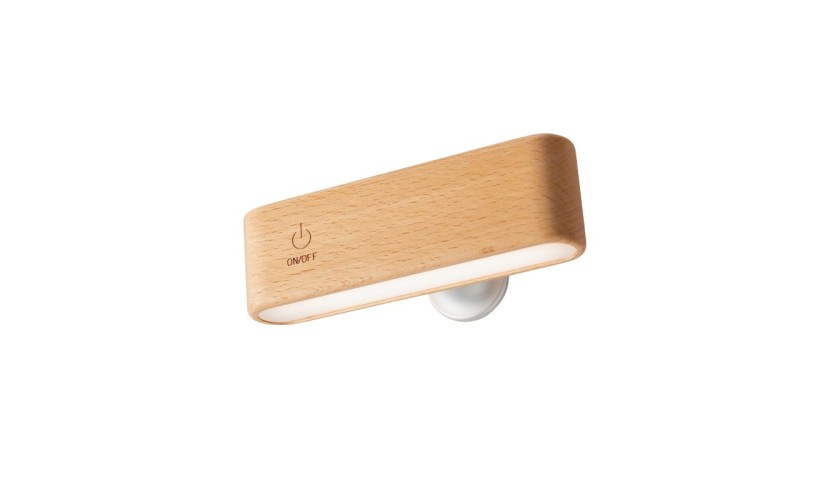 Επιτοίχιο διακοσμητικό φωτιστικό LED σε μοντέρνο σχεδιασμό με ξύλινο εφέ, επαναφορτιζόμενο, με μέγιστη αυτονομία μπαταρίας έως 10 ώρες.Πλήρως ασύρματο και φορητό, τοποθετείται εύκολα στον τοίχο χάρη στην ισχυρή ταινία διπλής όψης που διαθέτει η βάση ενώ η λάμπα κουμπώνει και ξεκουμπώνει πάνω της με ισχυρό μαγνήτη προκειμένου να αφαιρείται για να φορτιστεί. Ρυθμιζόμενη κλίση λάμπας και εύχρηστος έλεγχος αφής με touch control και τηλεχειριστήριο.Ιδανικό για ατμοσφαιρικό φωτισμό στην κρεβατοκάμαρα, το σαλόνι, το χωλ κα.