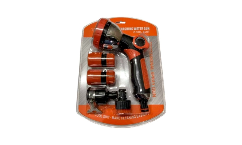 Σετ πιστόλι και ταχυσύνδεσμοι βρύσης για λάστιχο ποτίσματος-κήπου, πλαστικοί, υψηλής ανθεκτικότητας. Σετ 5 τεμαχίων.