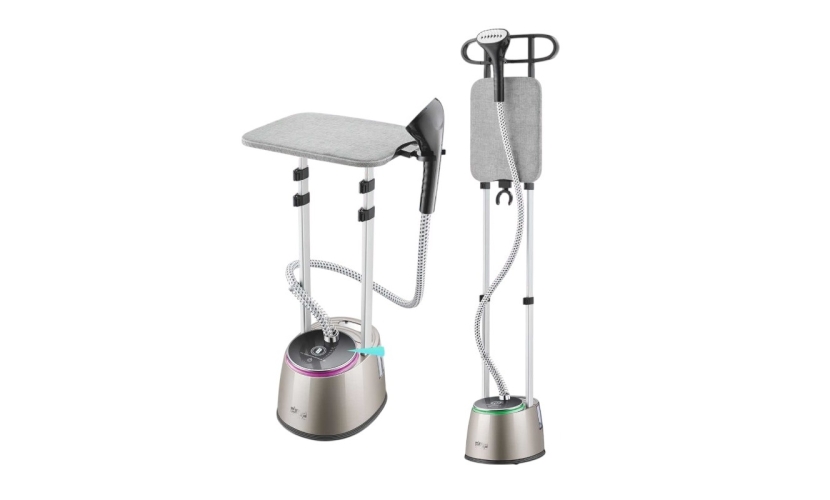 Ενσωματωμένη βάση σιδερώστρας με ρυθμιζόμενη κάθετη, διαγώνια και οριζόντια θέση, Διαστάσεις επιφάνειας σιδερώστρας: 38*29*16cm, Ρυθμιζόμενο ύψος έως 1.32mΓρήγορη θέρμανση σε 2 λεπτά,Πλήκτρο αφής,Φωτισμός LED 4 χρωμάτων,Ποσότητα ατμού/Steam Flow: 28-32 g/min, 8 ρυθμιζόμενες ταχύτητες , Ισχύς: 2000W, Τεχνολογία Anti Dry Burning, Χωρητικότητα δοχείου νερού: 1.6L, Διάρκεια ατμού: 60 λεπτά, Σύστημα εύκολου αδειάσματος δοχείου νερού, Τάση (V): 220V, Μήκος σωλήνα: 1.12 m, Πτυσσόμενο για εύκολη αποθήκευση, Περιλαμβάνεται προστατευτικό γάντι χειρός,Μήκος καλωδίου: 1.42m,Βάρος - 4,5 kg, Πιστοποίηση: CE.