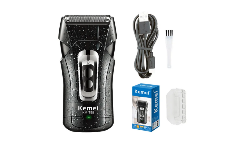 Επαναφορτιζόμενη ξυριστική μηχανή Kemei με ισχυρή λεπίδα και πρωτοποριακό εργονομικό σχεδιασμό για εύκολη και άνετη χρήση.
