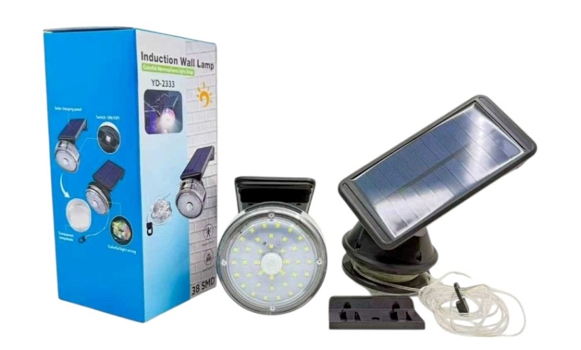 Ηλιακός προβολέας LED με αισθητήρα κίνησης και ενσωματωμένη γιρλάντα φωτισμού 5 μέτρων με πολύχρωμο φωτισμό RGB και ευρεία γωνία φωτισμού. Ανθεκτικός στην υγρασία και τις καιρικές συνθήκες. Αποτελεί ιδανική λύση για απόλυτα οικονομικό φωτισμό εξωτερικών χώρων.
