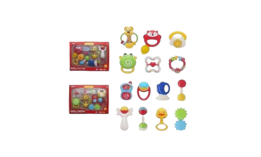 Βρεφικές κουδουνίστρες και μασητικά από ασφαλή μη τοξικά υλικά, σε υπέροχα σχέδια και χρώματα, με χειρολαβές για εύκολη χρήση. Το σετ περιλαμβάνει 8 τεμάχια.
