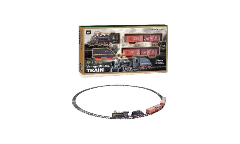Παιδικό τρενάκι σε Retro σχεδιασμό για τους λάτρεις του κλασσικού στυλ παιχνιδιών, με συναρμολογούμενες ράγες.