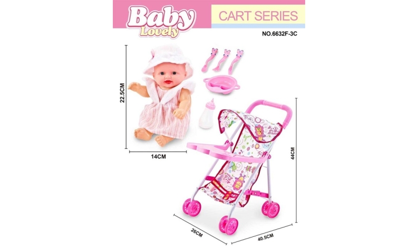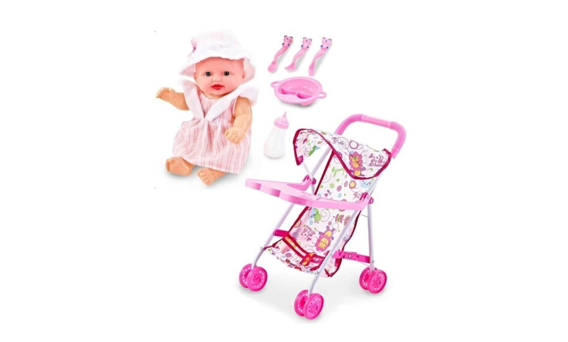 Σετ παιδικό καροτσάκι μωρού με κούκλα, σε πανέμορφο ρεαλιστικό σχεδιασμό με πολλαπλές δυνατότητες, με υπέροχα χρώματα και με ανθεκτική κατασκευή για ατελείωτες βόλτες! Πτυσσόμενο για εύκολη μεταφορά και αποθήκευση.
