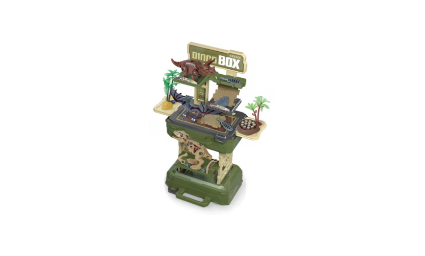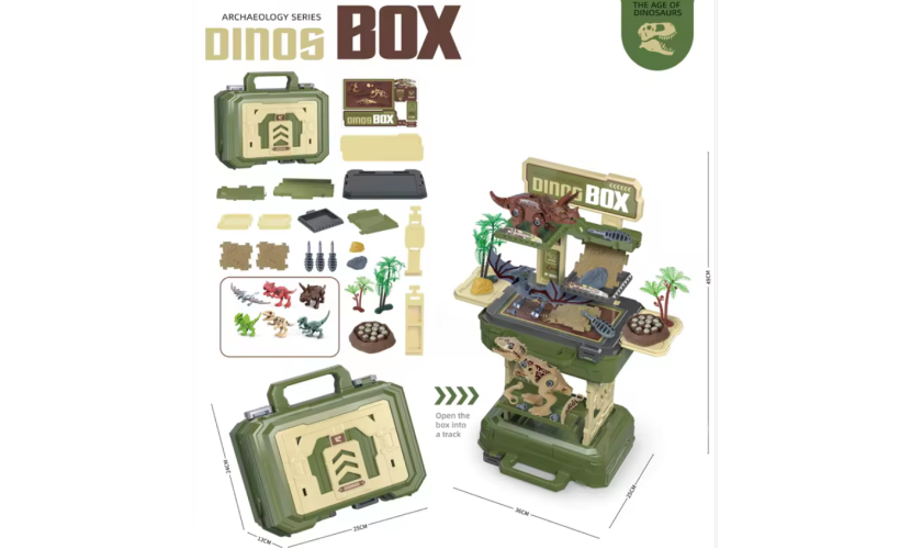 Σετ παιχνίδι πάρκο Δεινοσαύρων σε υπέροχο σχεδιασμό με πολλά αξεσουάρ, σε πρακτικό βαλιτσάκι μεταφοράς που μετατρέπεται πανεύκολα σε πάγκο παιχνιδιού.