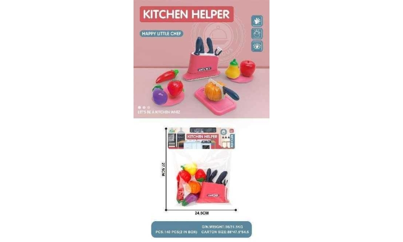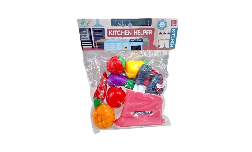 Παιδικό σετ κοπής τροφίμων με αξεσουάρ, σκεύη και τρόφιμα, σε υπέροχο πολύχρωμο σχεδιασμό.