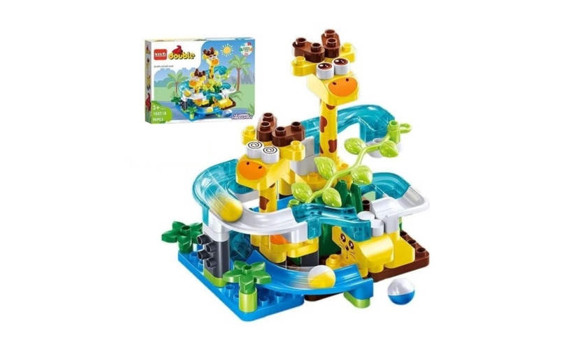 Συναρμολογούμενη πίστα DIY με τουβλάκα και τσουλήθρα με μπαλάκια που κάνουν τρελά κόλπα, για ένα ατελείωτο δημιουργικό παιχνίδι!