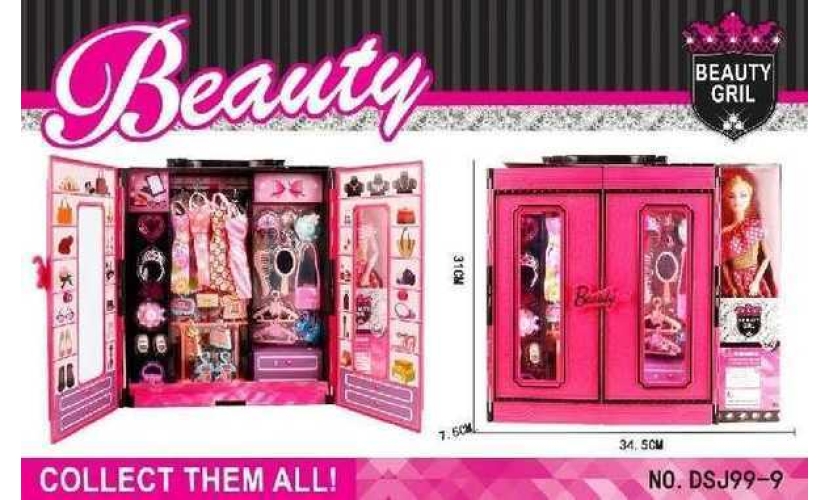 Σετ κούκλα με ντουλάπα με πολλά αξεσουάρ ομορφιάς και μακριά μαλλιά για να την περιποιηθείς όπως εσύ θα ήθελες!
