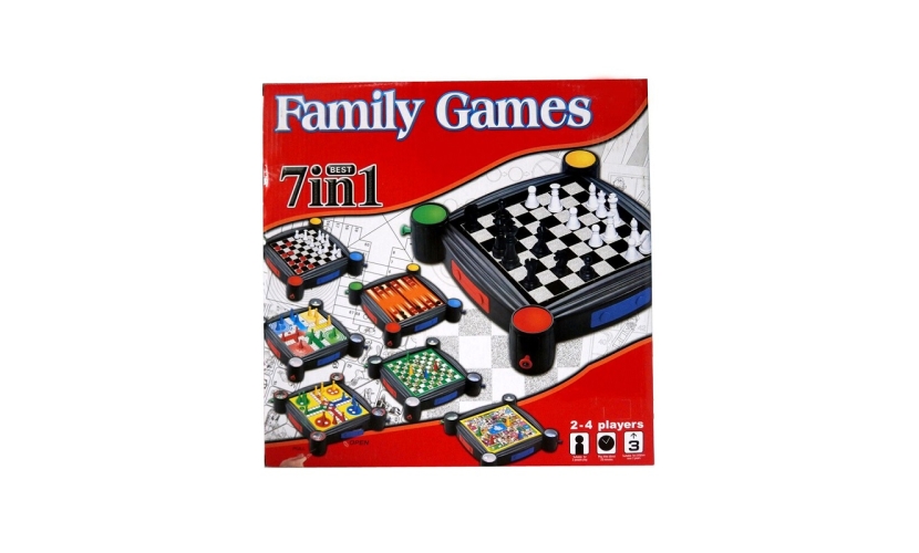 Σετ επιτραπέζιο παιχνίδι 7 σε 1 με Σκάκι-Τάβλι-Φιδάκι-Γκρινιάρη κα., με όλα τα απαραίτητα σύνεργα και αξεσουάρ για ατελείωτες ώρες παιχνιδιού με την όλη την οικογένεια ή τους φίλους σας!Για έως 4 παίκτες.