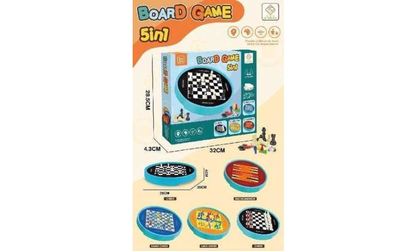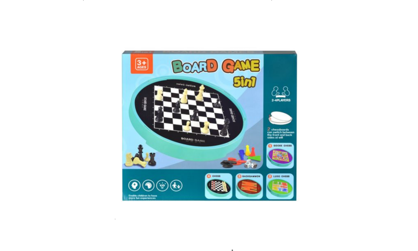 Σετ επιτραπέζιο παιχνίδι 5 σε 1 με Σκάκι-Τάβλι-Φιδάκι-Γκρινιάρη-Checkers, με όλα τα απαραίτητα σύνεργα και αξεσουάρ για ατελείωτες ώρες παιχνιδιού με την όλη την οικογένεια ή τους φίλους σας!Για έως 4 παίκτες.