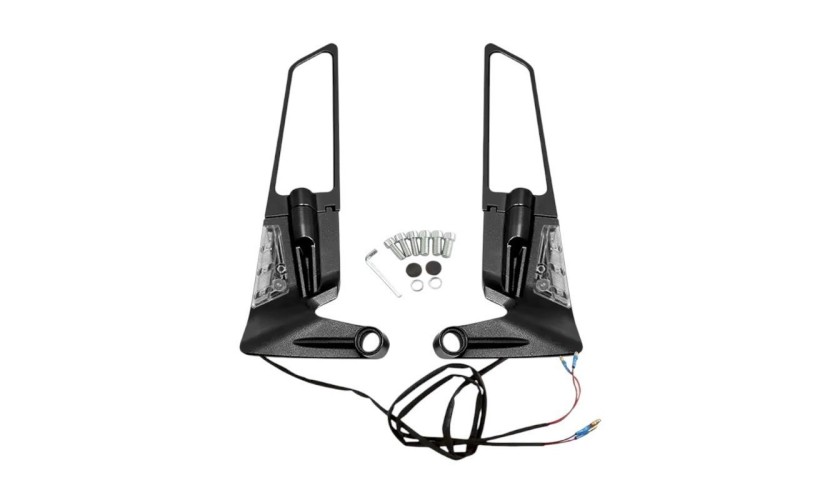 Καθρέπτες μοτοσυκλέτας περιστρεφόμενοι, με ενσωματωμένα φλας LED και πλήρες σετ συνέργων τοποθέτησης. Διαθέτουν μεταλλική βάση αλουμινίου με περιστρεφόμενο βραχίονα 180° για εύκολη ρύθμιση φοράς του καθρέπτη χωρίς να μετακινείτε το φλας. Μήκος καθρέπτη: 12.5cmΔιαστάσεις συνολικές: 23×8.6×4.8cm.