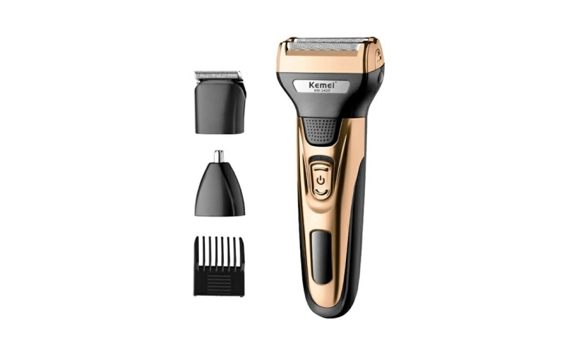 Επαναφορτιζόμενη ξυριστική μηχανή KM-1429 της Kemei με 3 διαφορετικές κεφαλές για την περιποίηση μαλλιών, προσώπου, μύτης και αυτιών. Ενα πρακτικό πολυεργαλείο trimmer, ιδανικό για κάθε είδους περιποίηση και ανώδυνη απομάκρυνση των τριχών χωρίς ερεθισμούς. Αδιάβροχη για χρήση και στο ντουζ, με πλενόμενες κεφαλές για εύκολο καθαρισμό.