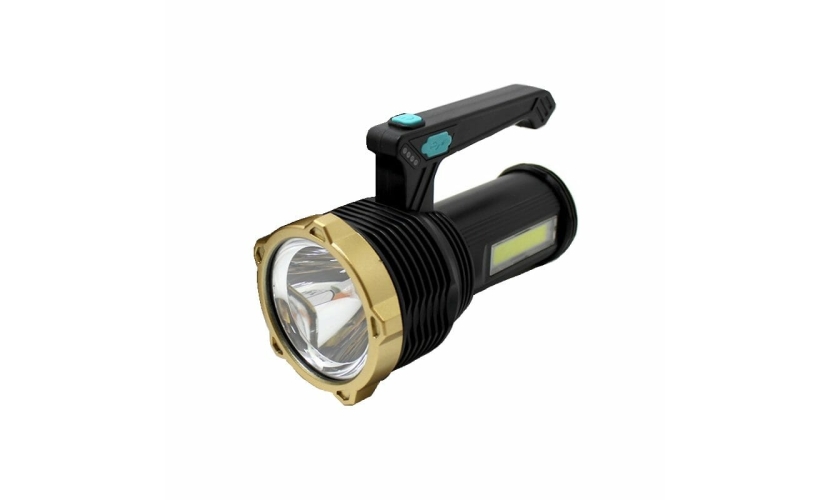 Επαναφορτιζόμενος φακός LED με λαβή μεταφοράς και εργονομικό σχεδιασμό. Ισχυρός φωτισμός με ρυθμίσεις και μεγάλη αυτονομία μπαταρίας.