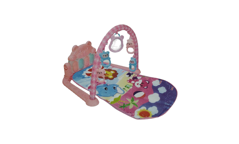 Βρεφικό γυμναστήριο με κρεμαστά παιχνίδια και πλήκτρα ποδιών, με ήχους και πολλαπλές δυνατότητες. Διαθέτει μαλακό στρωματάκι με σχέδια από απαλό υποαλλεργικό ύφασμα.