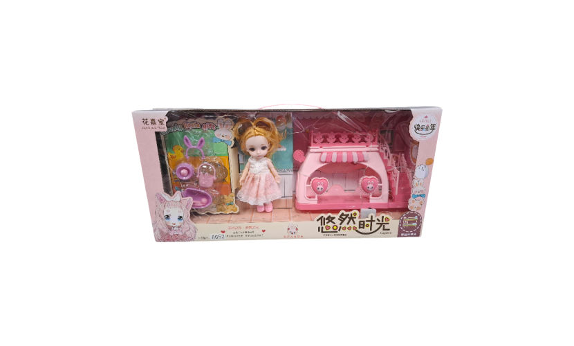 Σετ κούκλα με κρεβατάκι και πλήρες σετ αξεσουάρ περιποίησης και φροντίδας.