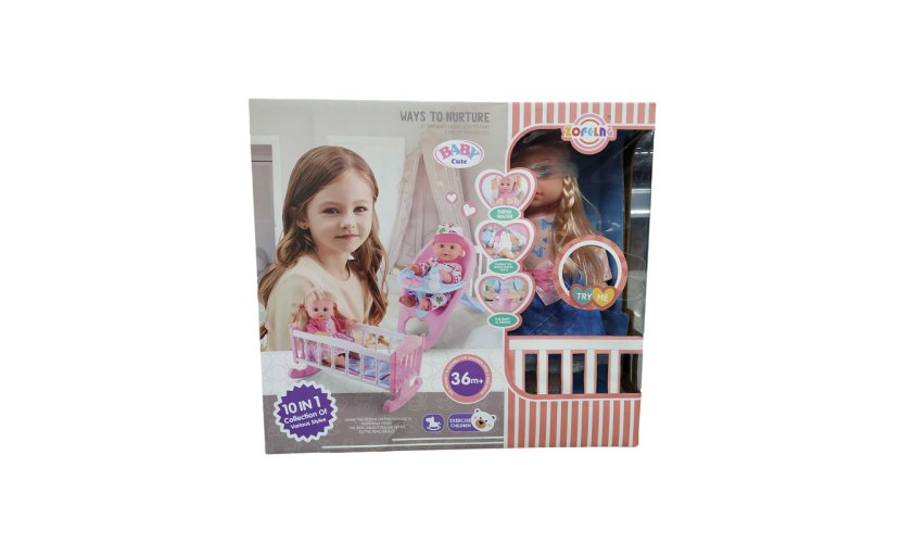 Κούκλα μωρό με πλήρες σετ κρεβατάκι, καρεκλάκι φαγητού, και αξεσουάρ για να φροντίσεις την κούκλα σου σαν ένα πραγματικό μωράκι!