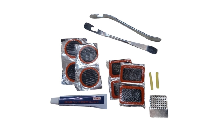 Σετ επισκευής ελαστικών ποδηλάτου 14 τεμαχίων, για άμεση και ασφαλή επισκευή μικρών ζημιών. Μπορείς να το χρησιμοποιήσεις για επισκευή ή συντήρηση του ποδηλάτου σου και ειδικά σε φθορές ή τρυπήματα στα ελαστικά σου με γρήγορη, ασφαλή και αποτελεσματική τοποθέτηση, εμποδίζοντας έτσι τη διαρροή του αέρα. Το σετ περιέχει μπαλώματα, βαλβίδες, μια κόλλα σε σωληνάριο και ένα μικρό φύλλο από αλουμίνιο για το τρίψιμο της σαμπρέλας.
