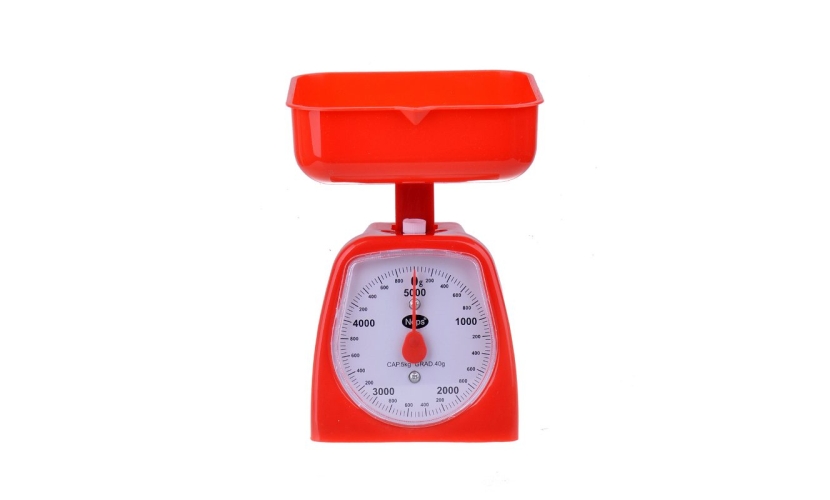 Αναλογική ζυγαριά κουζίνας με εργονομικό πλαστικό δοχείο τοποθέτησης τροφίμων που αφαιρείται και πλένεται.