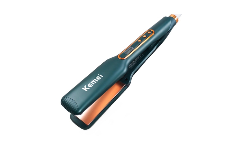 Ισιωτική μαλλιών Kemei με κεραμικές πλάκες με τεχνολογία τουρμαλίνης που προστατεύει τα μαλλιά απ την θερμότητα και τη φθορά, για ένα λείο και λαμπερό αποτέλεσμα! Οι φαρδιές της πλάκες και η ταχύτατη θέρμανσή της σας βοηθούν να ολοκληρώσετε το χτένισμα σας σε ελάχιστο χρόνο. Άμεση θέρμανση σε 30 δευτερόλεπτα. Ρυθμιζόμενη θερμοκρασία από έως 230 C. Οθόνη LCD με ένδειξη θερμοκρασίας. Διαστάσεις πλάκας θέρμανσης 90 x 45 mm. Μέγεθος προϊόντος: 31 x 5 cm. Περιστρεφόμενο καλώδιο 360 μοιρών. Ισχύς 55W. Περιστρεφόμενο καλώδιο.