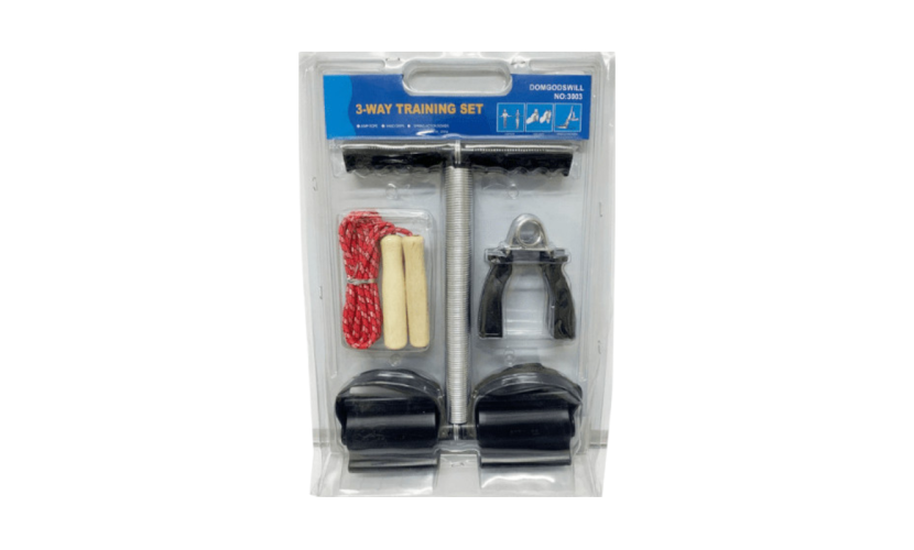 Πλήρες, πολυλειτουργικό σετ εκγύμνασης για όλο το σώμα με 3 διαφορετικά όργανα. Το σετ περιλαμβάνει: Jump Rope για αερόβια άσκηση, Hand Grip για ενδυνάμωση χεριών και Spring Action Rover για εκγύμναση πλάτης-στήθους. Ιδανικό σετ για πλήρη εκγύμναση στο σπίτι σας.