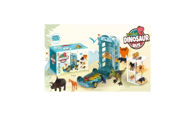 Φορτηγάκι μεταφοράς δεινοσαύρων με οροφή που ανοίγει και φιγούρες δεινοσαύρων. Μάζεψε τα δεινοσαυράκια σου και ετοιμάσου για ένα απίστευτο σαφάρι!
