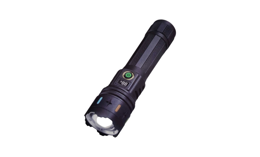 Φωτεινότητα: 800 Lumens,Απόσταση φωτισμού έως 300m,SOS Flash,UV Led,Μπαταρία επαναφορτιζόμενη (περιλαμβάνεται),Αυτονομία μπαταρίας: έως 4 ώρες,Περίβλημα αλουμινίου υψηλής ανθεκτικότητας,Λουράκι χειρός,Διαστάσεις: 18 x 3.5cm.Περιλαμβάνεται καλώδιο φόρτισης USB.