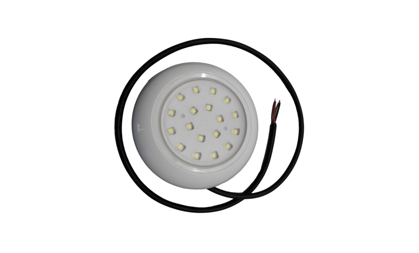 Φωτιστικό spot πισίνας/σπα LED, μέγιστης ανθεκτικότητας, από υψηλής ποιότητας πλαστικό ABS που δεν επιτρέπει εισχώρηση νερού. Ισχύς: 27W. Διαστάσεις: 15 x 2.5 cm. Μήκος καλωδίου: 95cm.Χρώμα φωτισμού: 6500ΚΤάση: DC 12V. Waterproof: IP68.