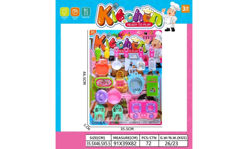 Σετ μαγειρικής μίνι με όλα τα απαραίτητα αξεσουάρ που χρειάζεσαι για να δημιουργήσεις την δική σου πολύχρωμη κουζίνα, για μία ρεαλιστική εμπειρία μαγειρικής!