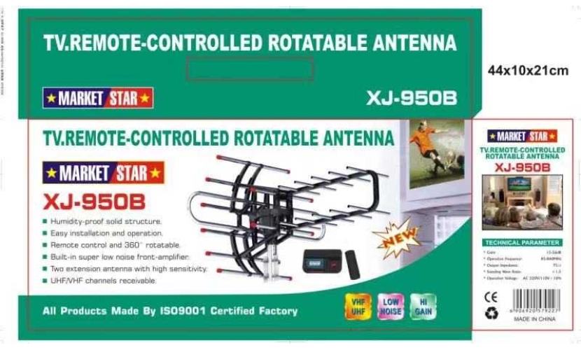 Εξωτερική κεραία τηλεόρασης 950TG με χειριστήριο και λήψη σήματος 360 μοιρών. Κατασκευασμένη από υψηλής ποιότητας υλικά, πλαστικό & αλουμίνιο, αδιάβροχη και ανθεκτική σε ακραίες καιρικές συνθήκες. Παρέχει άριστο σήμα με πολύ χαμηλή κατανάλωση ενέργειας.