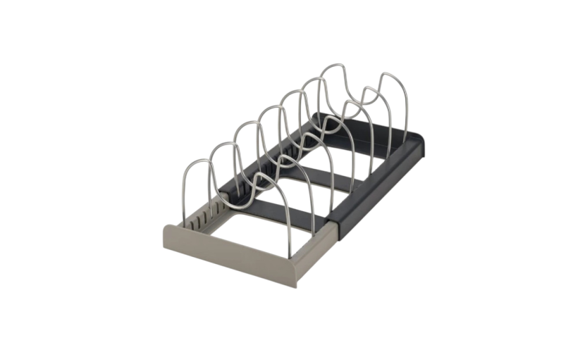 Βάση οργάνωσης σκευών κουζίνας μεταλλική με ρυθμιζόμενο μήκος 31-56cm και διαχωριστικά που μπορούν να τοποθετηθούν ανάλογα με το μέγεθος θέσεως που επιθυμείτε.