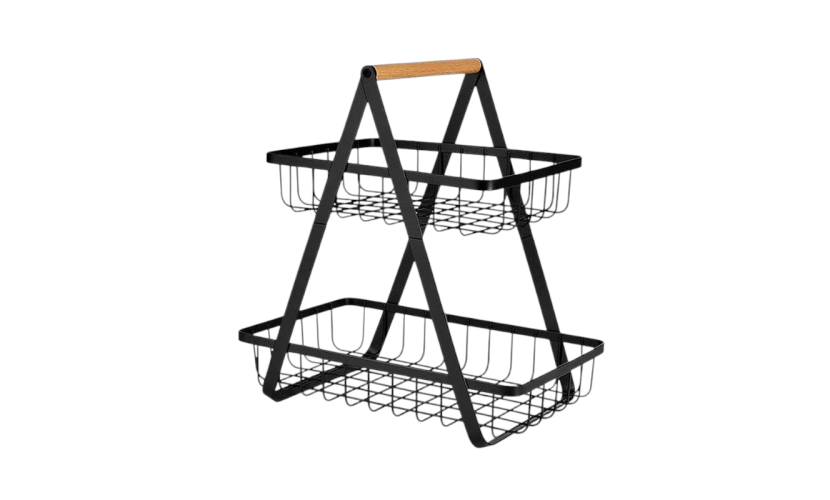 Μεταλλική ραφιέρα τροφίμων & φρουτιέρα κουζίνας, με 2 πρακτικά ράφια και χειρολαβή μεταφοράς. Διαστάσεις: 30 x 32 x 18cm.