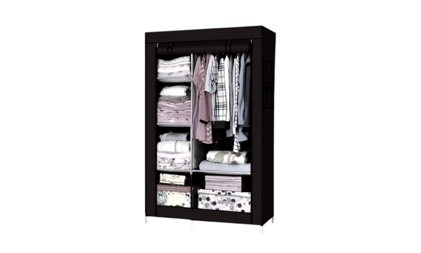 Υφασμάτινη ντουλάπα με ράφια, κατάλληλη για παπούτσια, ρούχα, λευκά είδη και οτιδήποτε επιθυμείτε να αποθηκεύσετε. Εύκολα συναρμολογούμενη, με στιβαρή κατασκευή με μεταλλικό σκελετό και ανθεκτικό ύφασμα non-woven που αντιστέκεται στην υγρασία και τη σκόνη. Το μπροστινό μέρος ανοίγει με φερμουάρ και τυλίγεται σε ρολό το οποίο στηρίζεται με ταινίες velcro για εύκολη πρόσβαση. Ιδανική για το σπίτι, το εξοχικό ή την αποθήκη σας.