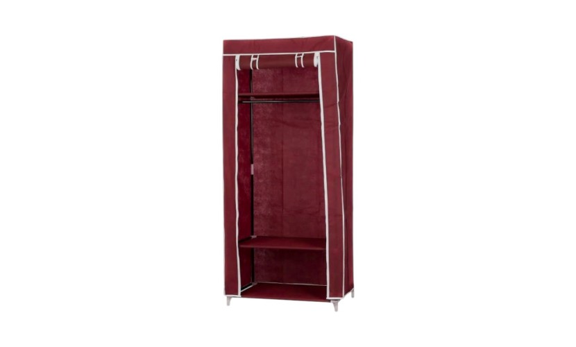 Υφασμάτινη ντουλάπα με ράφια, κατάλληλη για παπούτσια, ρούχα, λευκά είδη και οτιδήποτε επιθυμείτε να αποθηκεύσετε. Εύκολα συναρμολογούμενη, με στιβαρή κατασκευή με μεταλλικό σκελετό και ανθεκτικό ύφασμα non-woven που αντιστέκεται στην υγρασία και τη σκόνη. Το μπροστινό μέρος ανοίγει με φερμουάρ και τυλίγεται σε ρολό το οποίο στηρίζεται με ταινίες velcro για εύκολη πρόσβαση. Ιδανική για το σπίτι, το εξοχικό ή την αποθήκη σας.