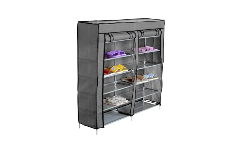 Παπουτσοθήκη υφασμάτινη 5 επιπέδων, με εύκολη συναρμολόγηση. Με στιβαρή κατασκευή με μεταλλικό σκελετό και ανθεκτικό ύφασμα non-woven που αντιστέκεται στην υγρασία και τη σκόνη. Το μπροστινό μέρος ανοίγει με φερμουάρ και τυλίγεται σε ρολό το οποίο στηρίζεται με ταινίες velcro για εύκολη πρόσβαση. Ιδανική για το σπίτι, το εξοχικό ή την αποθήκη σας.Διαστάσεις: 118 x 120 x 30cm