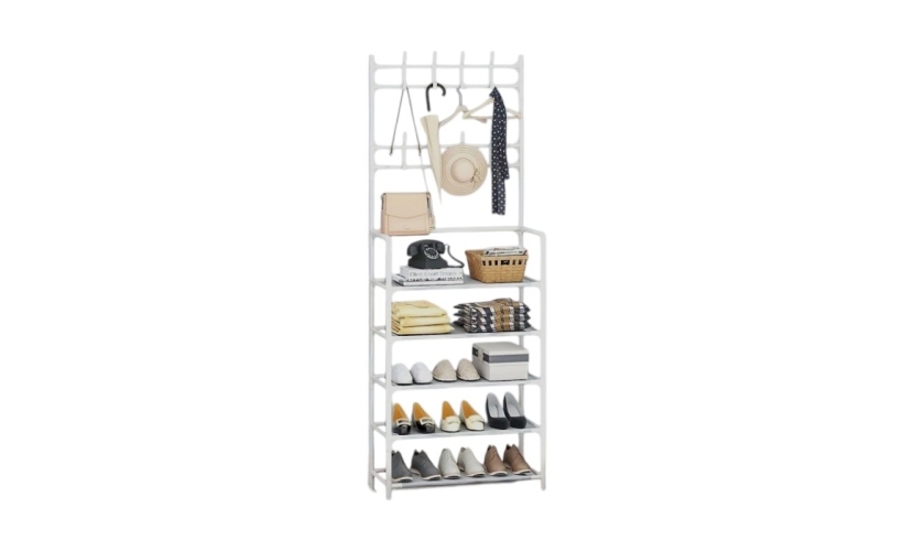 Κρεμάστρα δαπέδου μεταλλική, με 5 υφασμάτινα ράφια παπουτσιών, ιδανική ως έπιπλο εισόδου ή για την οργάνωση των ρούχων στο δωμάτιό σας . Διαστάσεις: 172 x 60 x 29 cm.