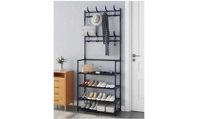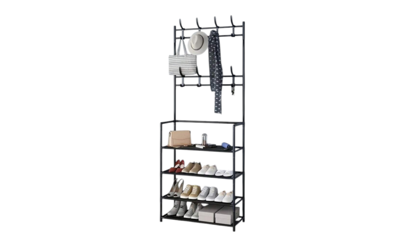 Κρεμάστρα δαπέδου μεταλλική, με 4 υφασμάτινα ράφια παπουτσιών, ιδανική ως έπιπλο εισόδου ή για την οργάνωση των ρούχων στο δωμάτιό σας . Διαστάσεις: 170 x 60 x 26 cm.