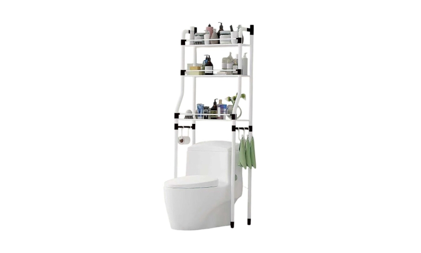 Επιδαπέδια ραφιέρα μπάνιου μεταλλική, συναρμολογούμενη, με 3 πρακτικά ράφια και πλαϊνές κρεμάστρες, ιδανική για οργάνωση και εξοικονόμηση χώρου καθώς τοποθετείται επάνω από τη λεκάνη τουαλέτας. Διαστάσεις: 48 × 25 x 156cm.