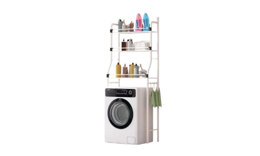 Επιδαπέδια ραφιέρα μπάνιου μεταλλική, συναρμολογούμενη, με 3 πρακτικά ράφια και πλαϊνές κρεμάστρες, ιδανική για οργάνωση και εξοικονόμηση χώρου καθώς τοποθετείται επάνω από το πλύντήριο σας. Διαστάσεις: 65 × 24 x 160cm.