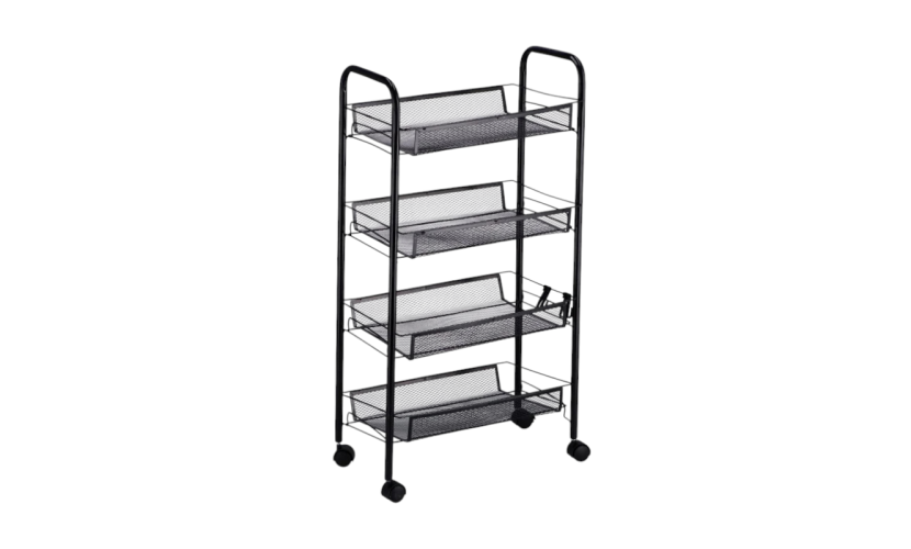 Μεταλλική, τετραώροφη ραφιέρα-μανάβης, τρόλει για εύκολη μετακίνηση. Εργονομικός σχεδιασμός για εξοικονόμηση χώρου και εύκολη καθημερινή χρήση, με ράφια μεγάλης χωρητικότητας και περιστρεφόμενες ρόδες 360° με στοπ ασφαλείας. Ιδανική για την κουζίνα, την αποθήκη, το μπαλκόνι σας ή οποιοδήποτε χώρο επιθυμείτε.