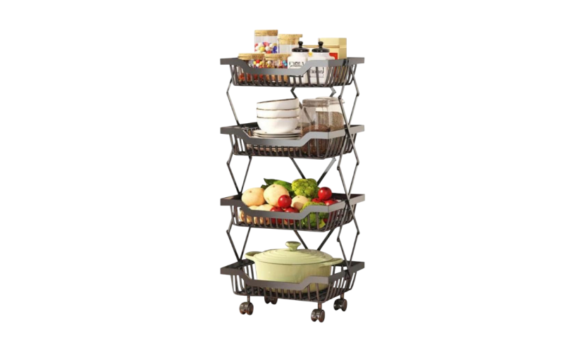 Μεταλλική ραφιέρα τετραώροφη, με ρόδες για εύκολη μετακίνηση. Πτυσσόμενη για να μην καταλαμβάνει χώρο όταν δεν χρησιμοποιείται, με εργονομικό σχεδιασμό για εύκολη καθημερινή χρήση.Με ράφια μεγάλης χωρητικότητας και περιστρεφόμενες ρόδες 360° με στοπ ασφαλείας. Ιδανική για την κουζίνα, την αποθήκη, το μπαλκόνι σας ή οποιοδήποτε χώρο επιθυμείτε.