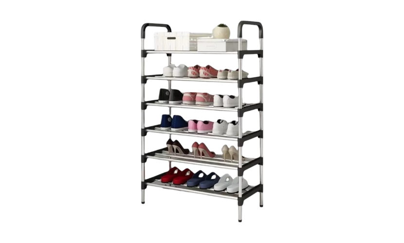 Ραφιέρα παπουτσιών 6 επιπέδων, με μεταλλικές βέργες και εύκολη συναρμολόγηση. Διαθέτει αντιολισθητικά πατάκια για την προστασία του πατώματός σας. Ιδανική για έπιπλο εισόδου ή οργάνωση αποθήκης. Διαστάσεις: 130 x 56 x 26cm