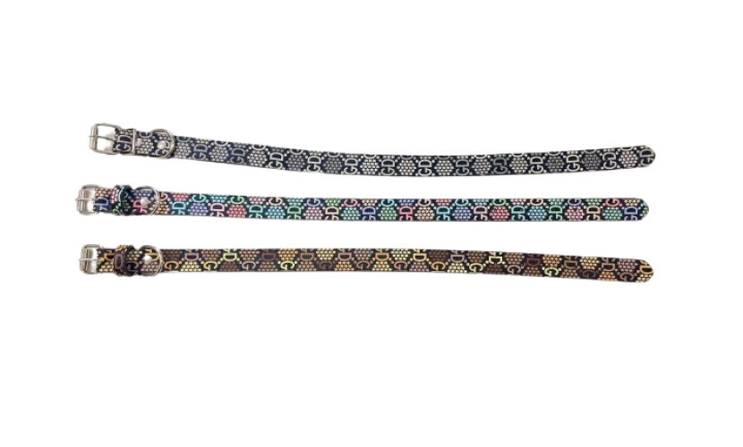 Περιλαίμιο-Κολάρο σκύλου με σχέδια και κούμπωμα ζώνης. Διαθέτει ρυθμιζόμενο μήκος έως 46cm και πλάτος 2cm. Διαθέτει επίσης κρικάκι ώστε να κρεμάσετε την ταυτότητα του κατοικιδίου σας ή αξεσουάρ.