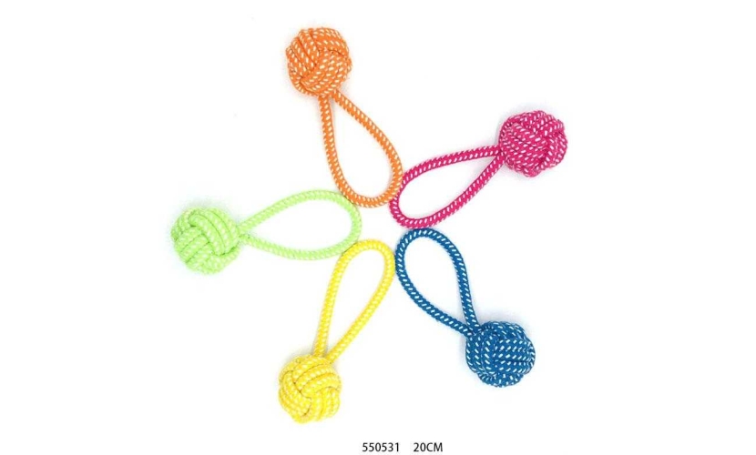 Παιχνίδι σκύλου σχοινί με μπάλα, κατασκευασμένο από ιδιαίτερα ανθεκτικό πολυεστέρα, μη τοξικό, ιδανικό για πολλαπλά είδη παιχνιδιού και άσκησης. Θα γίνει το αγαπημένο καθημερινό παιχνίδι που το σκυλί σας θα λατρέψει.