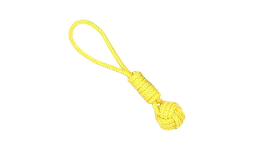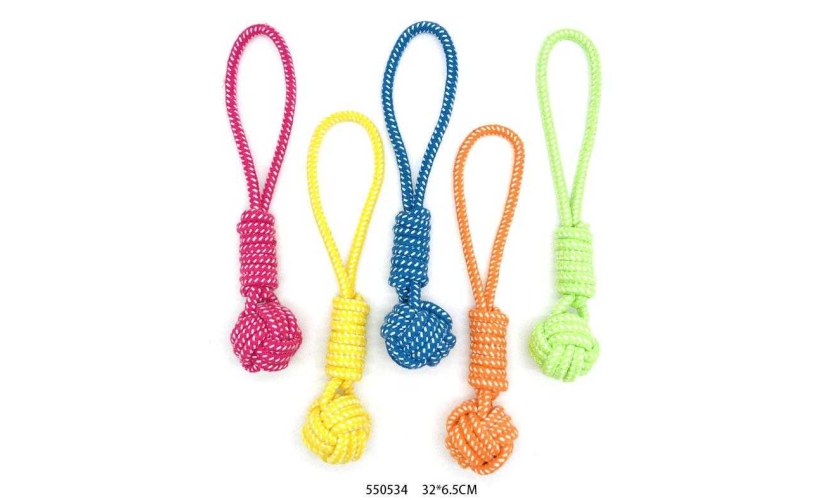 Παιχνίδι σκύλου σχοινί με μπάλα, κατασκευασμένο από ιδιαίτερα ανθεκτικό πολυεστέρα, μη τοξικό, ιδανικό για πολλαπλά είδη παιχνιδιού και άσκησης. Θα γίνει το αγαπημένο καθημερινό παιχνίδι που το σκυλί σας θα λατρέψει.