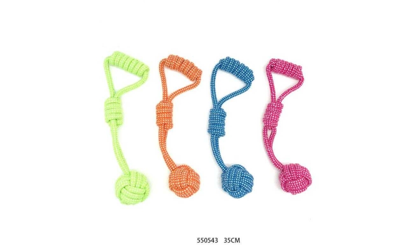 Παιχνίδι σκύλου σχοινί με μπάλα, κατασκευασμένο από ιδιαίτερα ανθεκτικό πολυεστέρα, μη τοξικό, ιδανικό για πολλαπλά είδη παιχνιδιού και άσκησης. Θα γίνει το αγαπημένο καθημερινό παιχνίδι που το σκυλί σας θα λατρέψει.