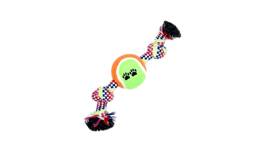 Παιχνίδι σκύλου σχοινί με μπάλα, κατασκευασμένο από ιδιαίτερα ανθεκτικό πολυεστέρα, μη τοξικό, ιδανικό για πολλαπλά είδη παιχνιδιού και άσκησης. Θα γίνει το αγαπημένο καθημερινό παιχνίδι που το σκυλί σας θα λατρέψει.