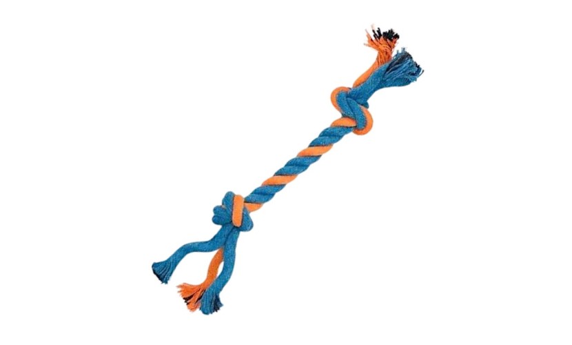 Παιχνίδι σκύλου σχοινί με κόμπους, από ανθεκτικό, μη τοξικό πολυεστέρα, ιδανικό για παιχνίδια τραβήγματος/αντίστασης ενώ παράλληλα βοηθά στην υγιεινή στόματος του σκύλου σας καθώς καθαρίζει ήπια και απασχολεί τα δόντια του. Συνολικό μήκος: 20cm.