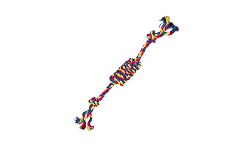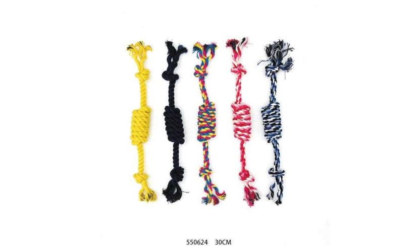 Παιχνίδι σκύλου σχοινί με κόμπους, από ανθεκτικό, μη τοξικό υλικό, ιδανικό για παιχνίδια τραβήγματος/αντίστασης ενώ παράλληλα βοηθά στην υγιεινή στόματος του σκύλου σας καθώς καθαρίζει ήπια και απασχολεί τα δόντια του.